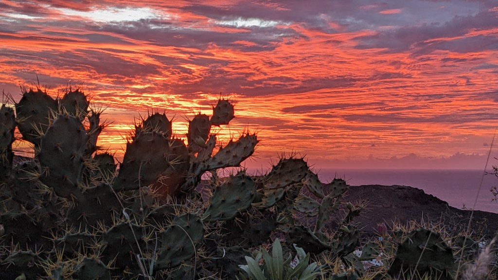 Winter in general and January in particular is a good time to hit the reset button: to try to replace unhealthy habits with healthy ones. We hope to accomplish this upgrade and integrate elements into our 2023 daily routines going forward. If I had to forecast our ability to do so: I only have about 80% confidence that we will keep several of these behaviors. We are on the road with long drives and short term stays when we drive between places, and it takes us awhile to settle in to a new routine once we get to our next long term stay. For example, from here (Agaete, Grand Canary Is.), we will be on a car ferry two days, then we have one night in Grenada, two nights in Barcelona, one night in Genoa, four days in Rome, and one night on a car ferry before we get to our next month-long stay in Tirana, Albania…and I’m guessing Albania will take some acclimation time. The behaviors I have most confidence in us maintaining: some scaled down form of exercise, an attempted healthy diet, maybe a short meditation, depending on where we are. But hey, we made it one month!