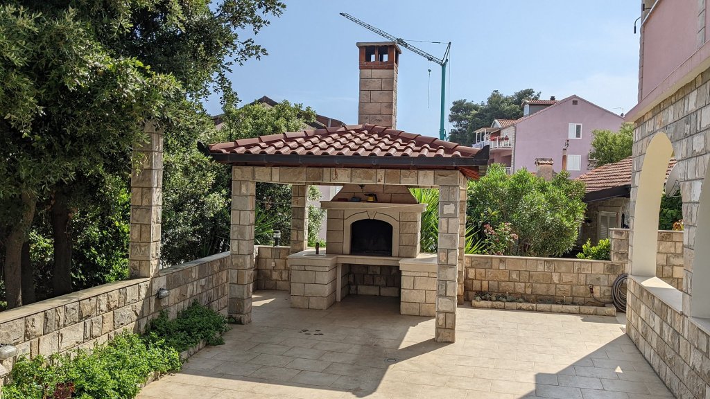 We didn’t plan to stay on Korcula Island; we’d booked a nice VRBO guest house in Orebic…but after driving from Split with everything we own packed into the car, the owner’s mother took one look at our dogs on arrival, and said, “No!” She didn’t speak English, but she made it blindingly clear that we weren’t staying on her family’s property–not with those beasts. I was outraged. We’d booked 4 months in advance. I called the son, and, creating a very awkward hour or so delay, I said I would not leave the driveway until I saw our complete refund processed. After that, it was getting late in the day, and we had to scramble to find a dog-friendly place with parking that was immediately available for the entire month.