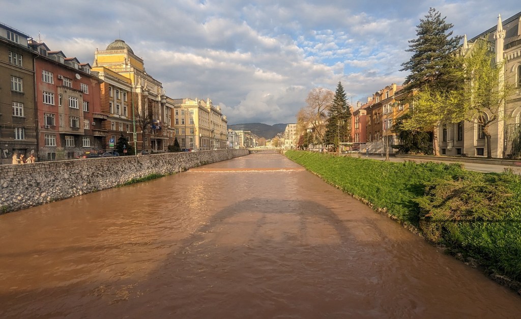 By pure chance, the first airbnb we booked was in the Sarajevska Pivara (Sarajevo Brewery) complex, the setting for a major action scene in the book. This apartment had been part of the compensation package for our host’s father who had worked at the brewery during the siege. It was immersive: we were listening to the audiobook from an apartment above the brewery as the scene of a shelling of said brewery unfolded in the book. The scene couldn’t have felt more immediate, nor more surreal. The author described the underground spring accessed in the brewery basement that Sarajevans would risk their lives to draw water from; when we walked the dogs we could hear water gushing underground from the hills toward the brewery.