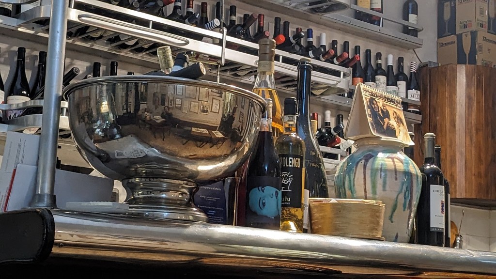 As our dinner the night before was less than stellar, we instead made a last-minute reservation at Tram Tram, a restaurant recommended on one of the blogs we’d read over the winter. It wasn’t too far, so we decided to walk to the restaurant. That may have been a mistake — a couple of the neighborhoods we walked through were a bit sketchy. Upon arriving at the restaurant, we were seated in the vacant front room, right next to the front door. Not only were people opening the door and walking almost on top of us as they came in, but the door didn’t close properly so we had a cold draft throughout the meal. Not ideal! However both the food (fava beans, artichokes, tonnarelli cacio e pepe) and wine were great, and other than where they sat us the service was pretty good. We did get to watch “mom” at her desk working on the accounts while “son” searched the stacks for a second bottle of wine for us (and ultimately had to run to the storeroom next door for). I can recommend Tram Tram, but I would definitely suggest making reservations at least a few days ahead — maybe then you’ll get to sit in the dining room with the cool kids. We caught a taxi home rather than risk the sketchy walk back late at night.